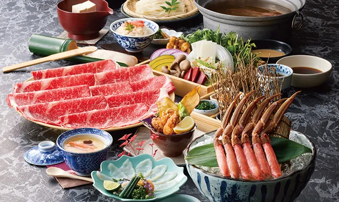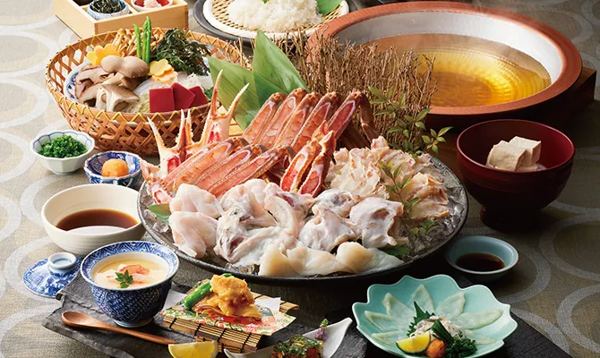 ※写真は、とらふぐ本ずわいかにすき 食べつくしコースです